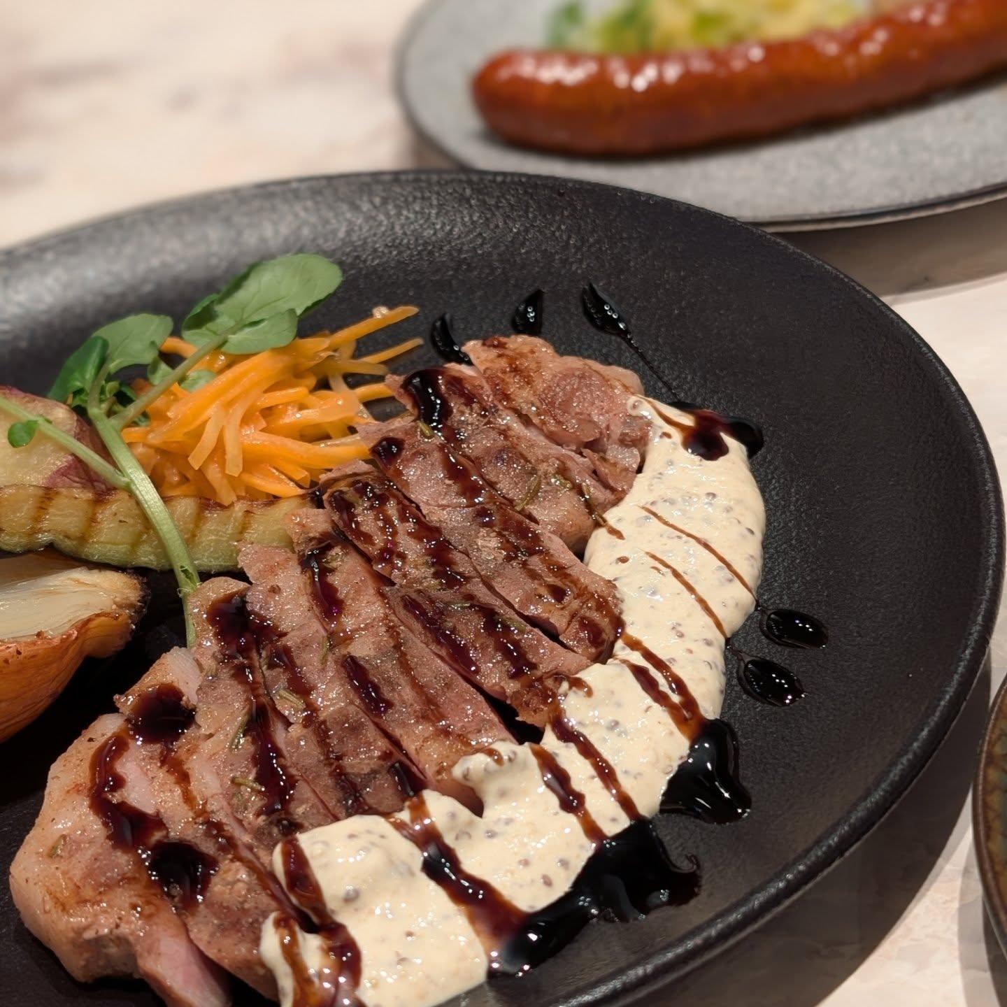 観音池ポークの肩ロースグリル、こちらも低温調理したものをグリルしてしっとりした食感に自家製のマスタードソースとバルサミコがベストマッチです✨