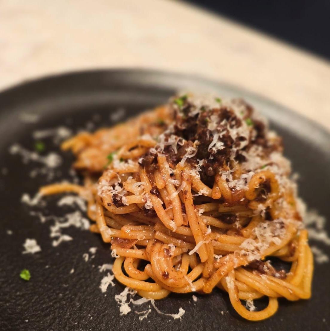 もっちり麺に、黒毛和牛のスネ肉をじーっくり煮込んだボロネーゼが絡みます🫣