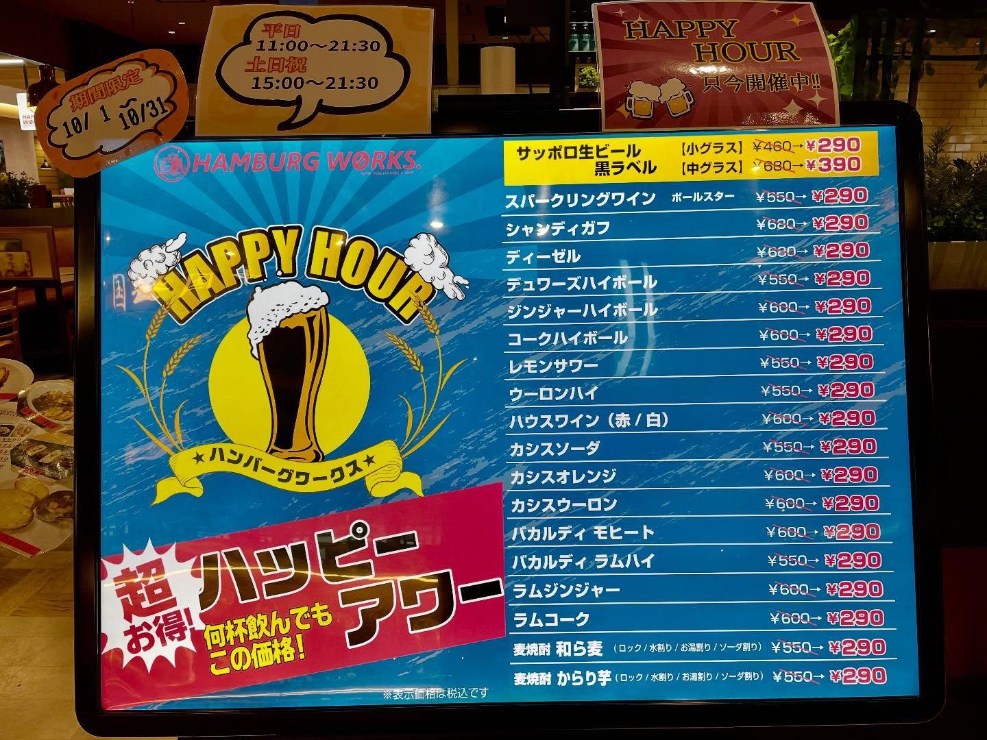 🍁10月🍁もお得なハッピーアワー開催中🍻