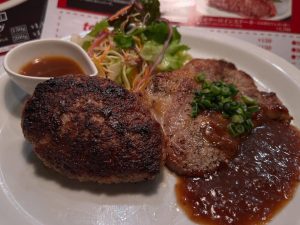 当店自慢のA4ランク和牛使用のハンバーグと、国産豚肩ロースのグリルの鉄板コンビ!!