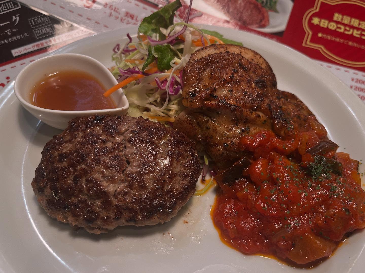 当店自慢!牛100%の、和牛A4ランクの肉を使用しましたワークス特製ハンバーグは、牛肉の旨味甘味を余すことなく閉じ込めて焼き上げ、箸を入れた途端肉汁が溢れ出ます!!😋