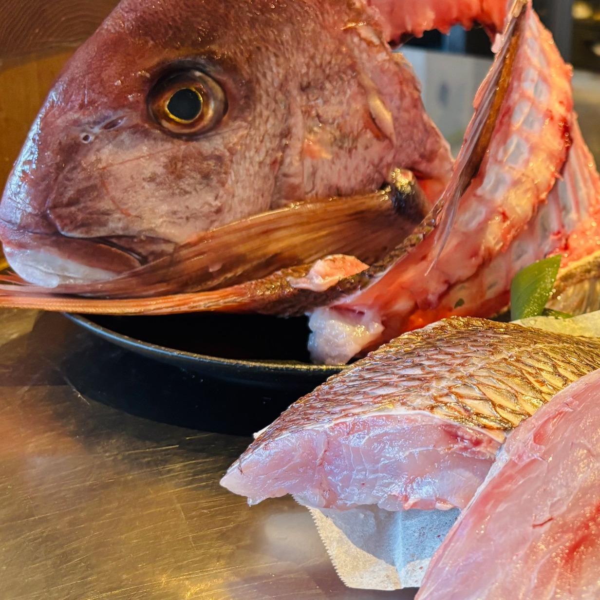 本日の届きたて!② ・能生 真鯛 かぶとは、煮付け・焼きお好みで! ご注文頂いてから、焼き・煮付けますので少しお時間ちょうだいしますが絶品に仕上げますので楽しみにお待ちください😊 当店は煮付け職人がいますので、かぶと煮をはじめ毎日お魚が変わる【煮魚御膳】も大人気です! 刺身も本日の夕方から登場中😊 真鯛刺身&真鯛かぶと&ご飯セットで鯛が楽しめる御膳にするのもおすすめです!