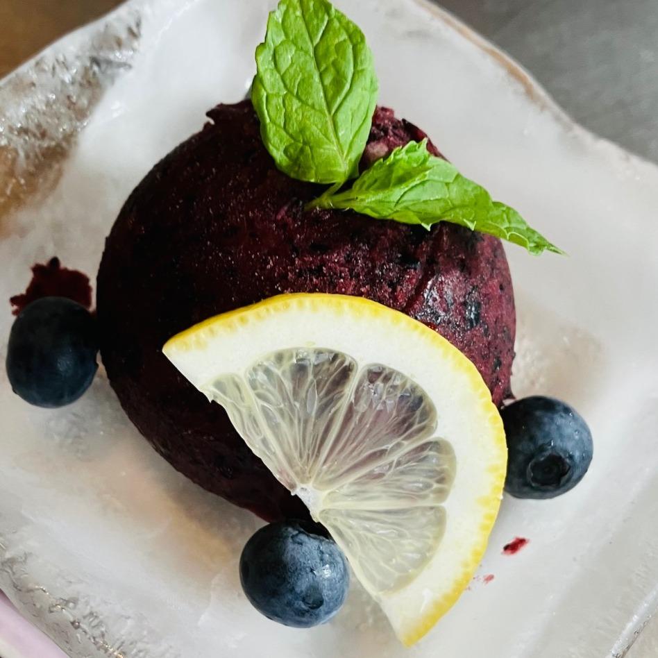 ブルーベリーフェスタ⑤ 【ブルーベリーシャーベット】 そうなんです! 百干国分寺店のブルーベリーフェスタ、今年はデザートも😊 凍らせたブルーベリーを丸ごとミキサーに… 濃厚で、ブルーベリー感満載の3日間限定のデザートをぜひお楽しみください‼ いやぁこれが美味しかった…😊