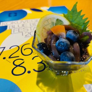 ブルーベリーフェスタ➅ 【ブルーベリーとするめいかの醤油漬け】 これ…いかじゃないよね?と聞いた逸品(笑) 百干の煮付け職人が美味しいと太鼓判! ブルーベリーの味もしっかりするし&さっぱりで美味しいと。 お酒に合うと笑顔で言ってました😊 お酒を召し上がるお客様からご注文! 完食されてました! ブルーベリーフェスタは、本日まで!まだ間に合いますので、ご来店お待ちしております😊