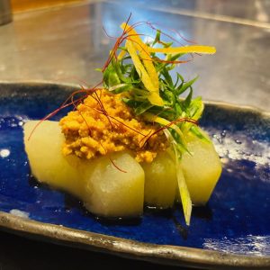冬瓜に肉みそとネギを乗せて、頬張っていただけたらと思います!