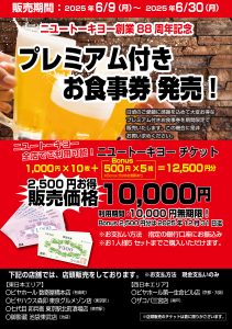 創業88周年記念「プレミアム付きお食事券」