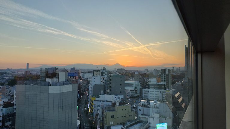 今の季節、ちょうど16:15頃太陽と富士山が重なって絶景です。
