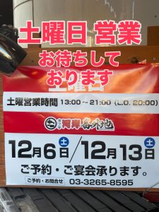 12月6日・13日 13時から営業しますので