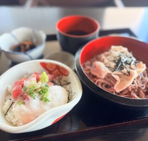 ◉お蕎麦膳 ~豚しゃぶつけそば 海鮮とろろ小丼 小鉢~