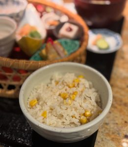 「玉蜀黍と雑魚の炊き込みご飯」