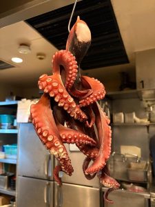 厨房からすでに分かる、真っ赤で新鮮なタコの足。