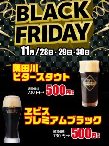 今回は【昼から夜まで】 ゆっくり楽しめる特別イベント✨ そしてなんと…今回は 【ビタースタウト】と【エビスの黒】の 2種をご用意しました🍺🖤 ブラックフライデーにぴったりの “黒ビール”をぜひ味わってほしい…!