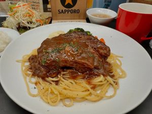 豚肩ロースをデミグラスソースで じっくりコトコトと、 長い時間をかけて煮込みました✨🤍 ビーフシチューのような肉と 下にひいてあるスパゲッティと相まって ボリューム満点な逸品です‼︎✨ 是非ご賞味ください ーーーーーーーーーーーーーーーーーー