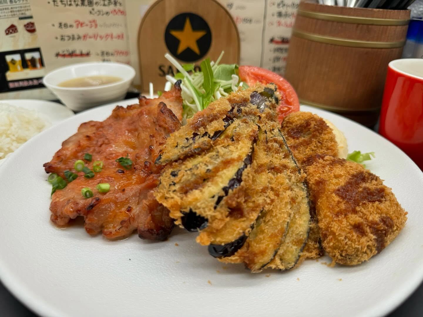 ▶️鶏もも肉の諸味味噌焼き &茄子と根菜のフライ