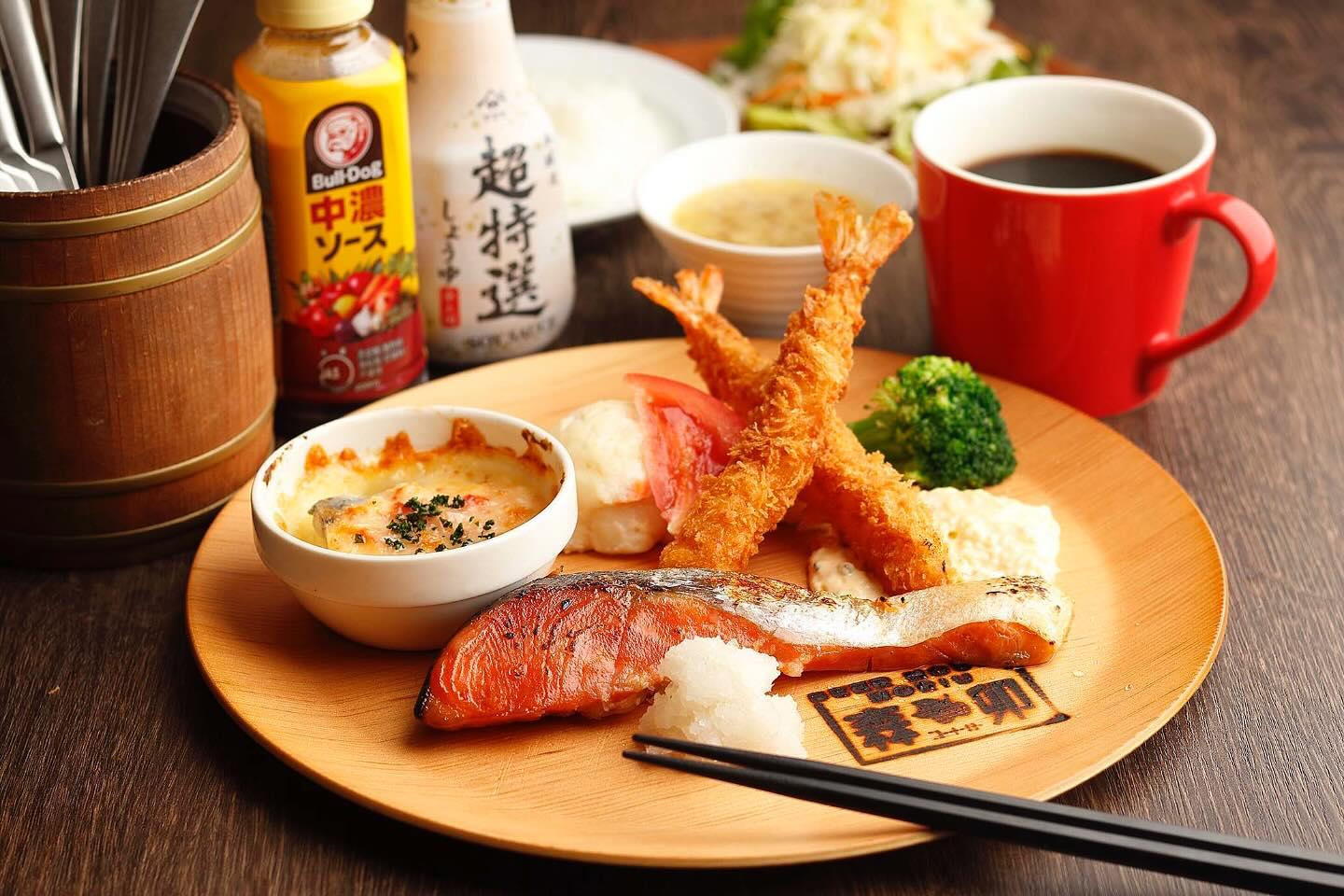 ○和風の鮭漬け ○エビフライ ○グラタン 付きの欲張りランチ✨🤍