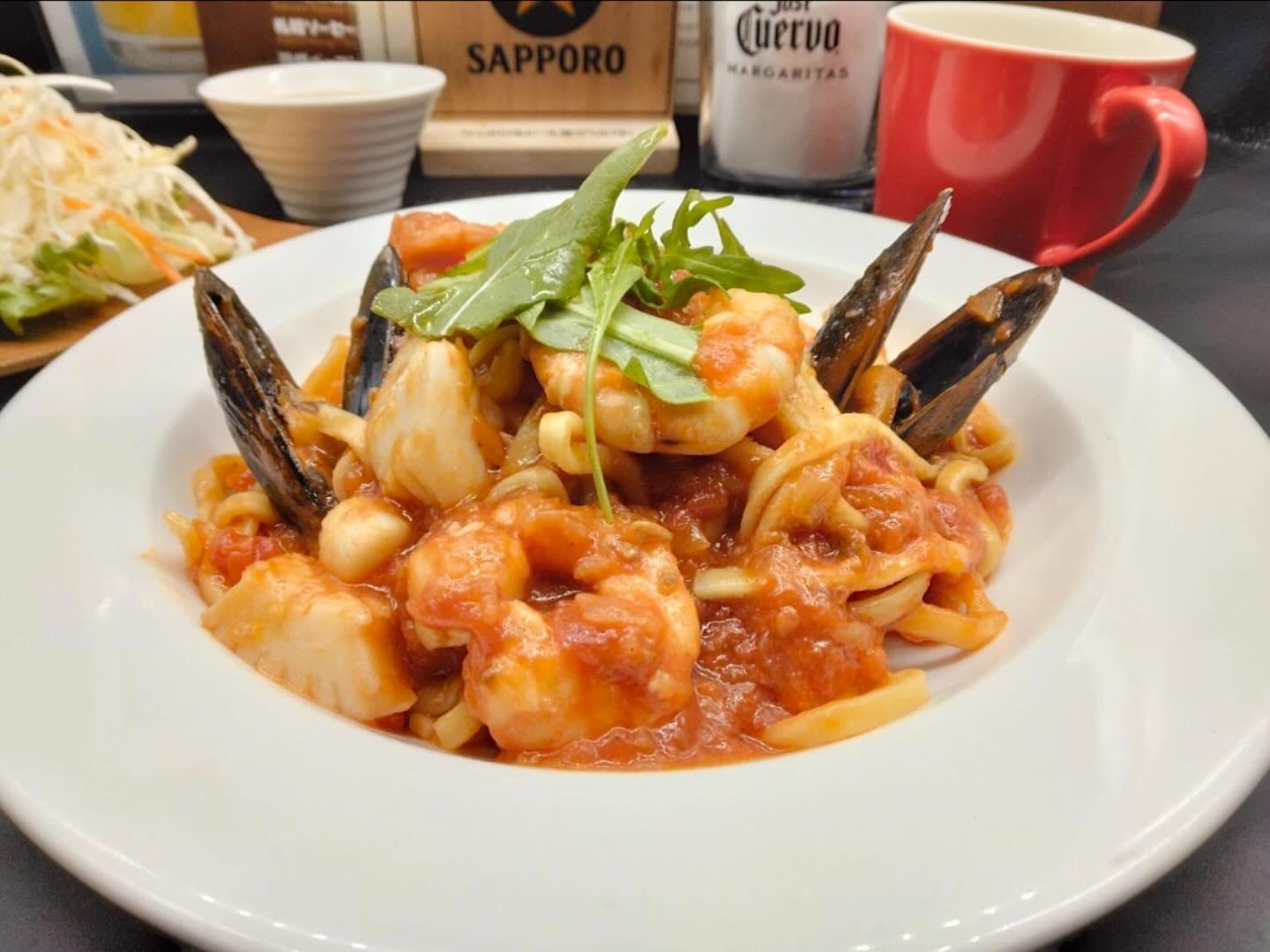 海老、イカ、貝柱、ムール貝の 4種魚介を贅沢に使用しました‼︎✨🤍 当店自家製濃厚トマトソースを合わせた 魚介の旨みたっぷりのペスカトーレです ぜひご賞味下さい👼🏻🤍 ーーーーーーーーーーーーーーーーーー