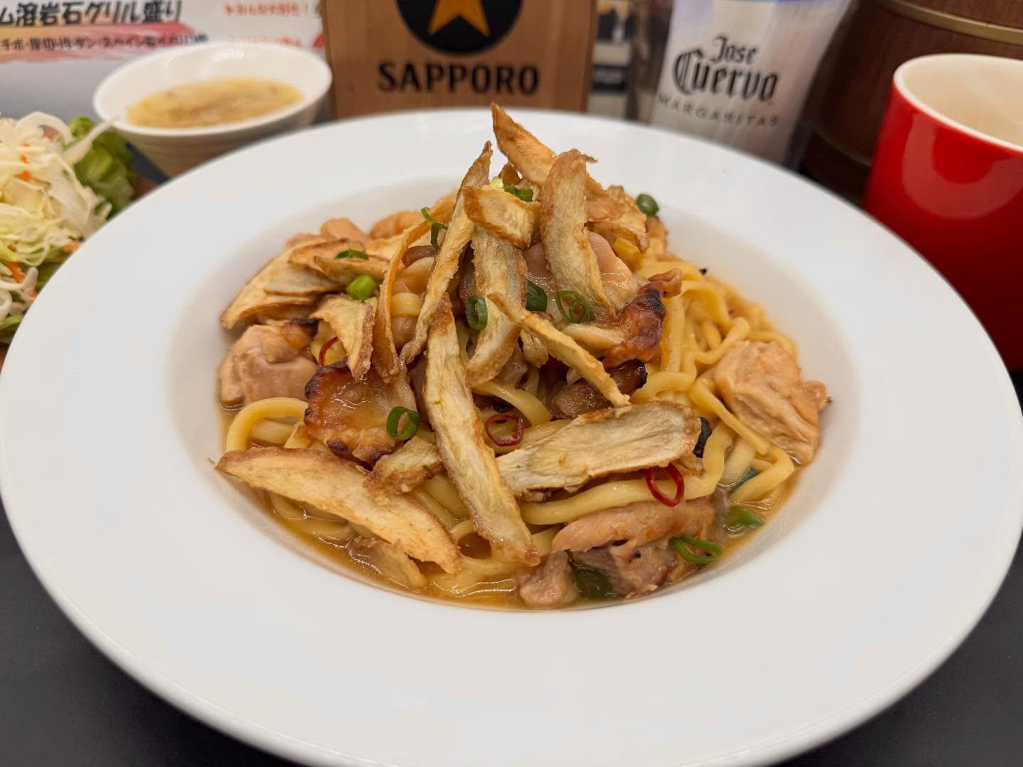 ▶️鶏肉と新ごぼうの和風パスタ🌿 香ばしく焼いた鶏肉に、 シャキシャキ食感の新ごぼうがアクセント✨🤍 お醤油とだしの優しい味つけに仕上げました。 春の食材をお楽しみください🌸🤍 ーーーーーーーーーーーーーーーーーー