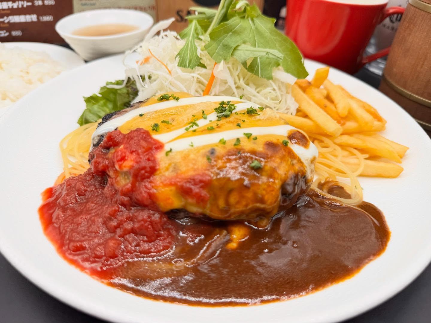 ▶️ダブルチーズハンバーグ デミグラスとトマトの二色ソース