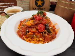 彩りのいい夏野菜で作った 香草香るラタトゥイユと🍅 辛味のないイベリコチョリソーの 旨味たっぷりのトマトソース パスタになっております✨🤍 ーーーーーーーーーーーーーーーーーー