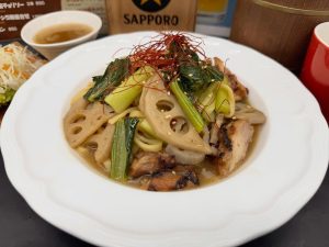 溶岩石で香ばしく焼き上げた照焼チキンと シャキシャキ食感の蓮根のキンピラを具材に 牡蠣油の旨味とバターが効いた 甘辛ソースでお召し上がり下さい‼︎✨🤍 ーーーーーーーーーーーーーーーーーー
