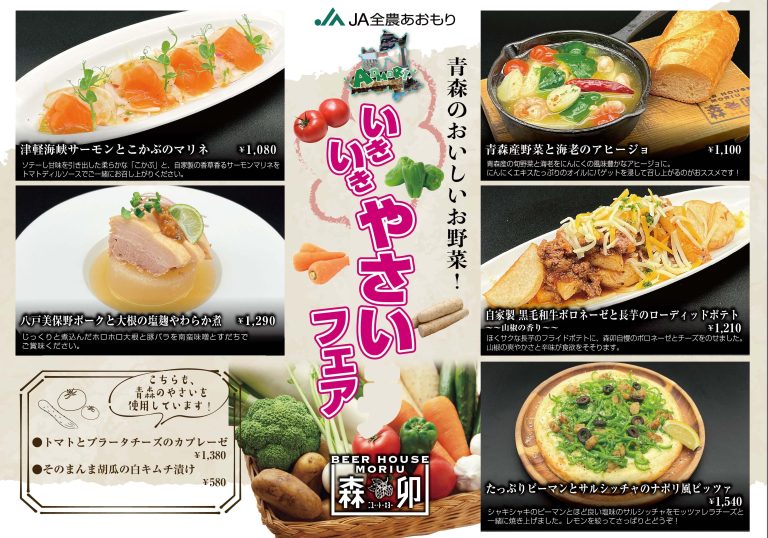 7月28日(月)スタート‼期間限定メニュ―【いきいきやさいフェア】青森の生産者の愛情で育てられた新鮮で美味しいやさいを活かした自慢の料理を森卯がお届けいたします♪