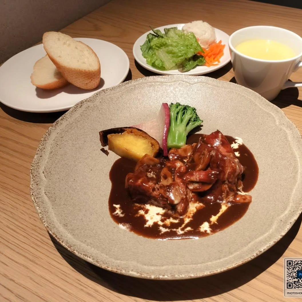 ⭐︎豚すね肉と季節野菜の赤ワイン煮込み ライス・パン付き