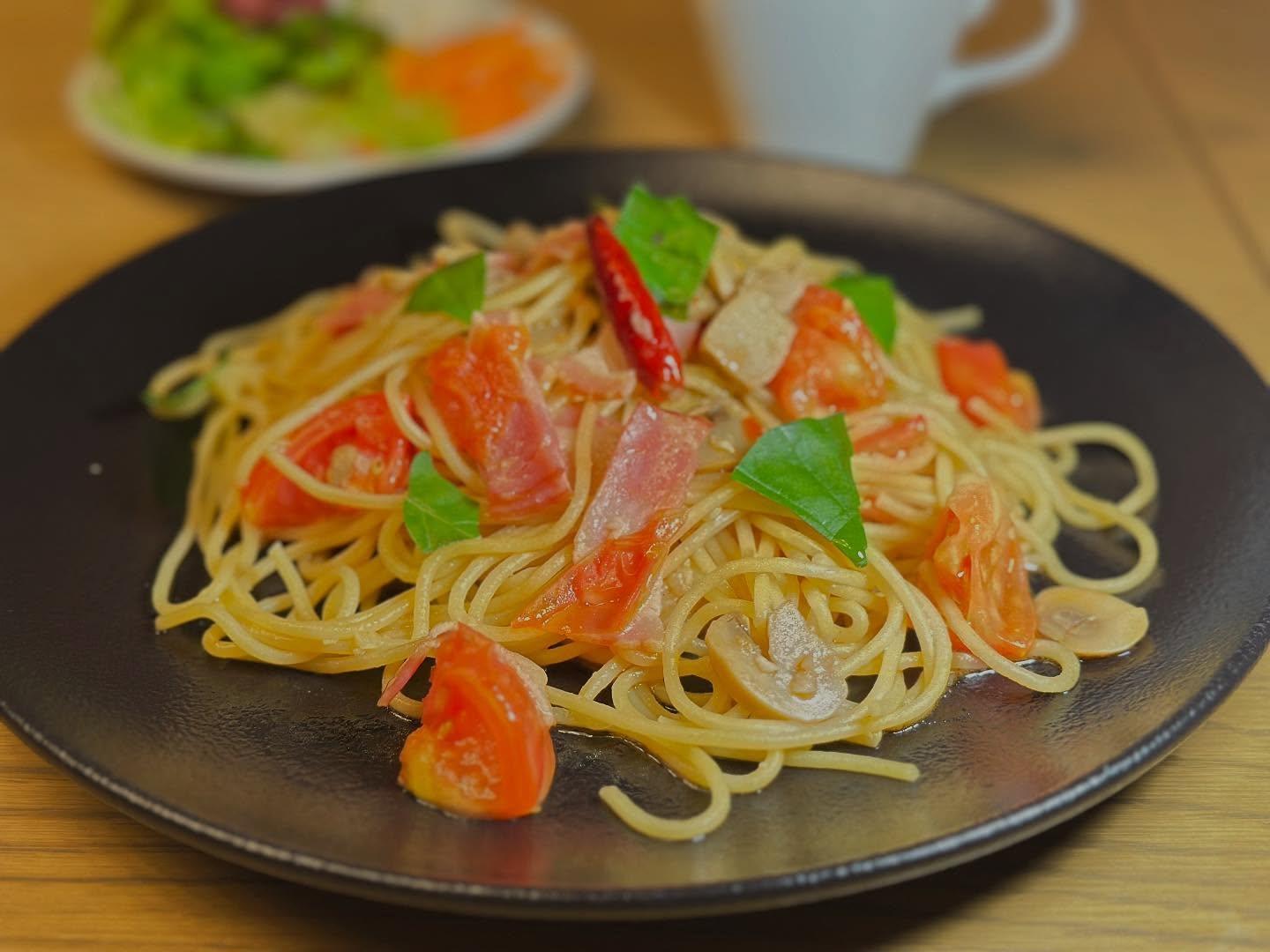 🍅フレッシュトマトとバジル・ベーコンのスパゲティー🌿