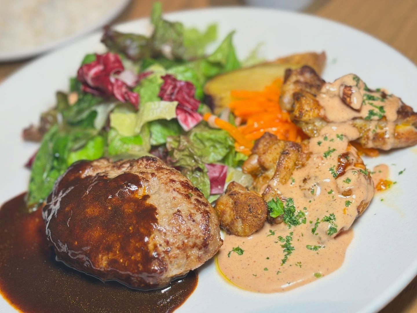 \ハンバーグデミソース&ケバブ風チキングリル/