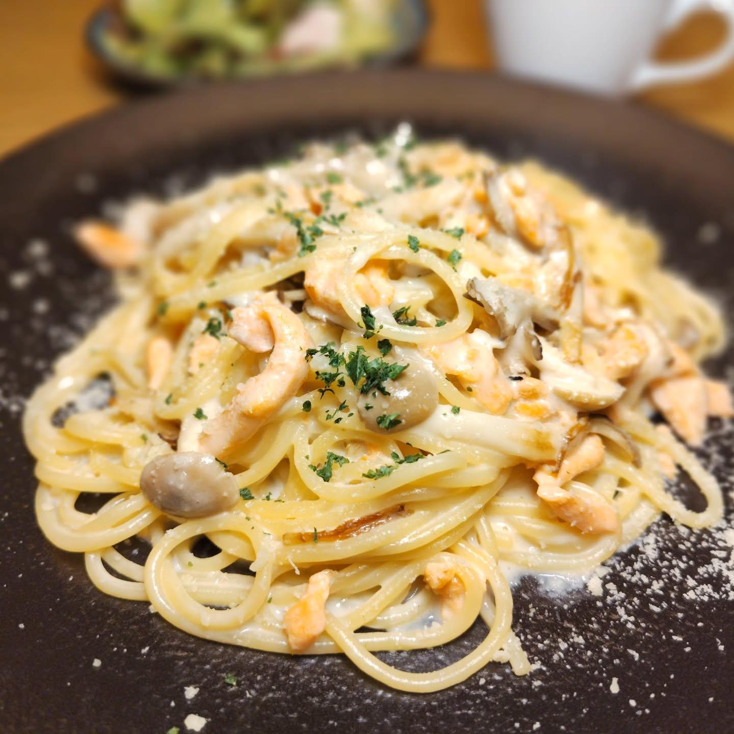 🐟\サーモンとキノコのクリームパスタ/🍄