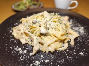 ツナと風味豊かな木の子を濃厚なクリームパスタに
