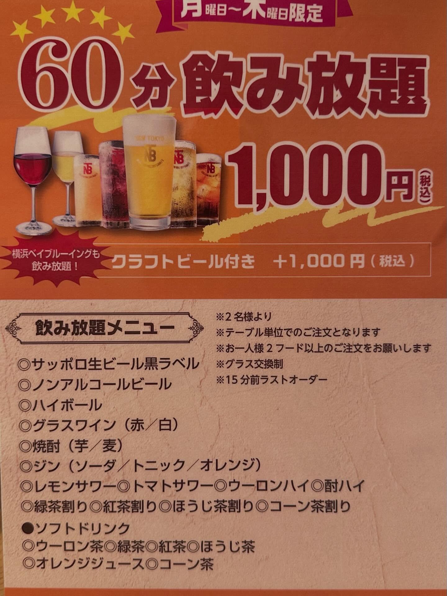 60分飲み放題 税込1,000円✨
