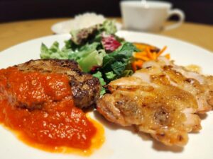 当店自家製のハンバーグに旨みたっぷりのトマトソース