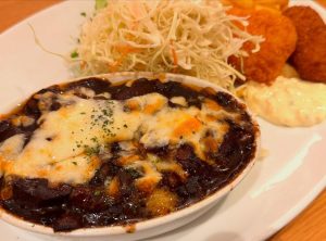 本日のおすすめランチです🍴 チキンとマッシュポテトのデミグラスチーズ焼&カニクリームコロッケ・海老カツ😊 数量限定販売となっております。 スープ、ドリンク飲み放題♪ライス大盛り、おかわり無料♪♪ 本日も沢山のご来店お待ちしております😊