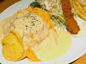 本日のおすすめランチです🍴 オムライス〜チーズクリームソース〜&海老フライ😊 数量限定販売となっております。 スープ、ドリンク飲み放題♪ライス大盛り、おかわり無料♪♪ 本日も沢山のご来店お待ちしております😊