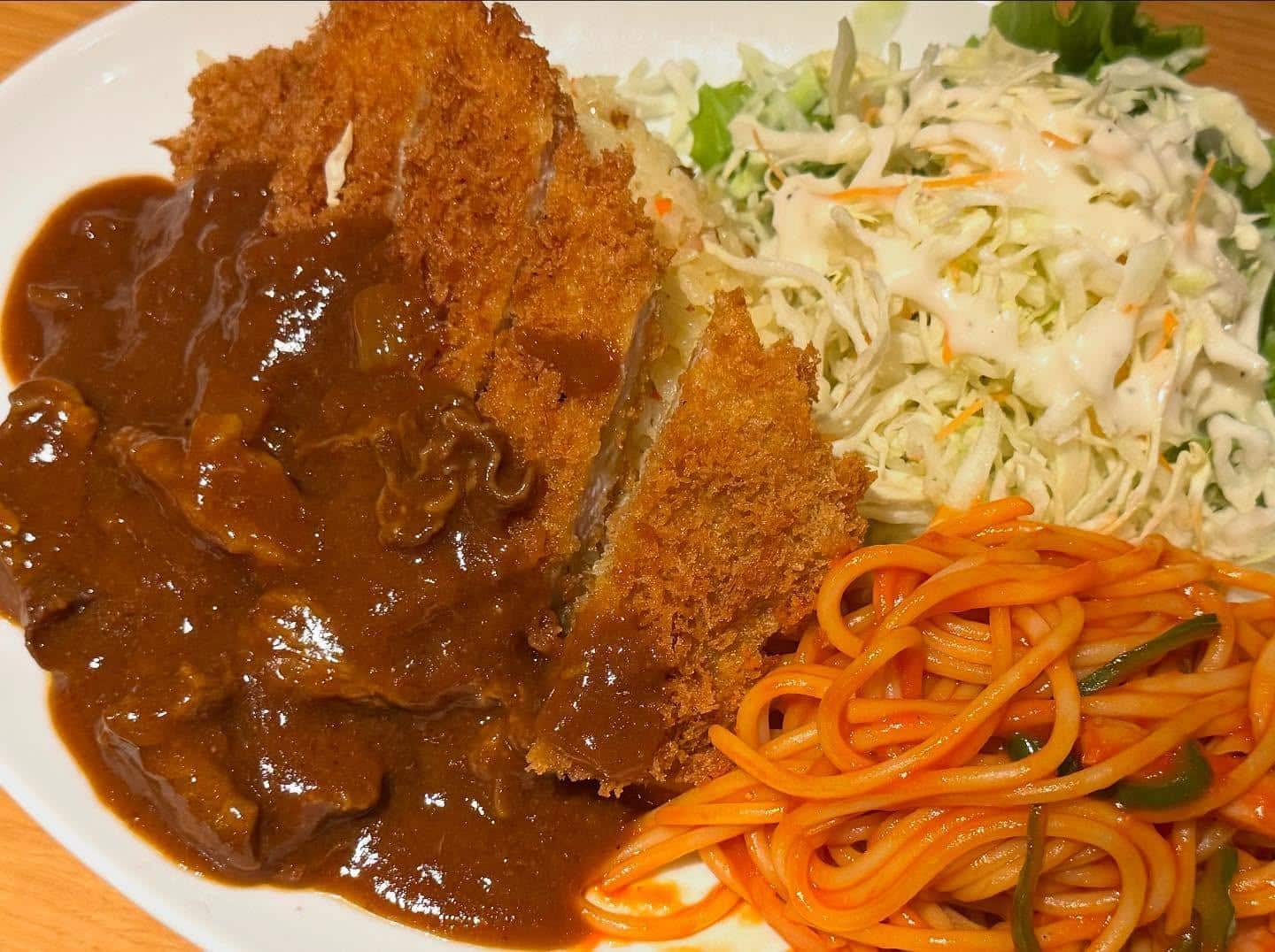 本日のおすすめランチです🍴 トルコライス(豚カツ200g・ピラフ・ナポリタン)〜ハヤシソース〜😊 数量限定販売となっております。 スープ、ドリンク飲み放題♪ライス大盛り、おかわり無料♪♪ 本日も沢山のご来店お待ちしております😊
