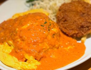 本日のおすすめランチです🍴 オムライス〜トマトクリームソース〜&牛肉コロッケ😊 数量限定販売となっております。 スープ、ドリンク飲み放題♪ライス大盛り、おかわり無料♪♪ 本日も沢山のご来店お待ちしております😊