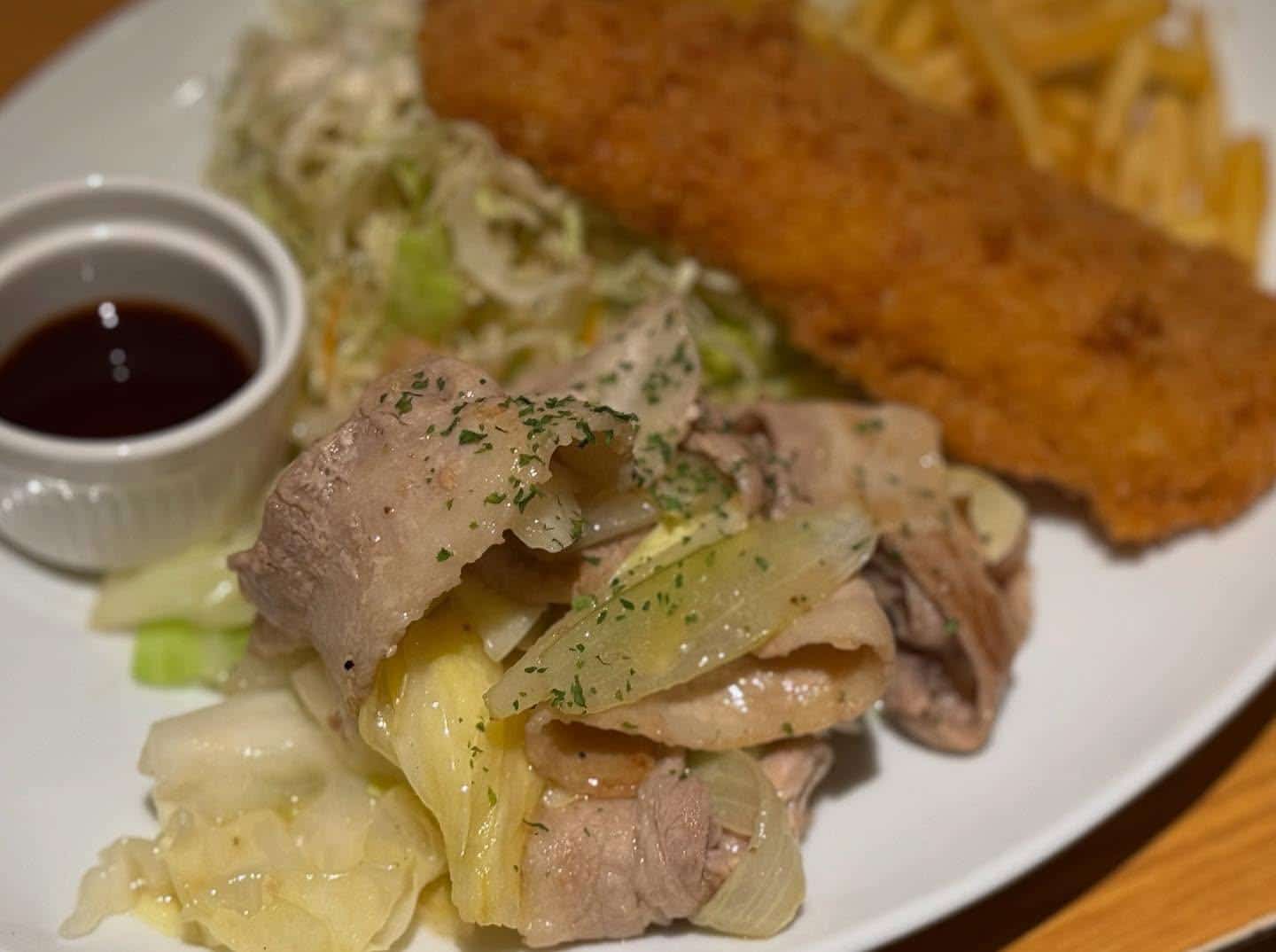 本日のおすすめランチです🍴 豚バラとキャベツの塩炒め&イカフライ😊 数量限定販売となっております。 スープ、ドリンク飲み放題♪ライス大盛り、おかわり無料♪♪ 本日も沢山のご来店お待ちしております😊