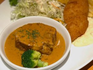 本日のおすすめランチです🍴 豚バラ肉のカレークリーム煮&白身魚のフライ😊 数量限定販売となっております。 スープ、ドリンク飲み放題♪ライス大盛り、おかわり無料♪♪ 本日も沢山のご来店お待ちしております😊