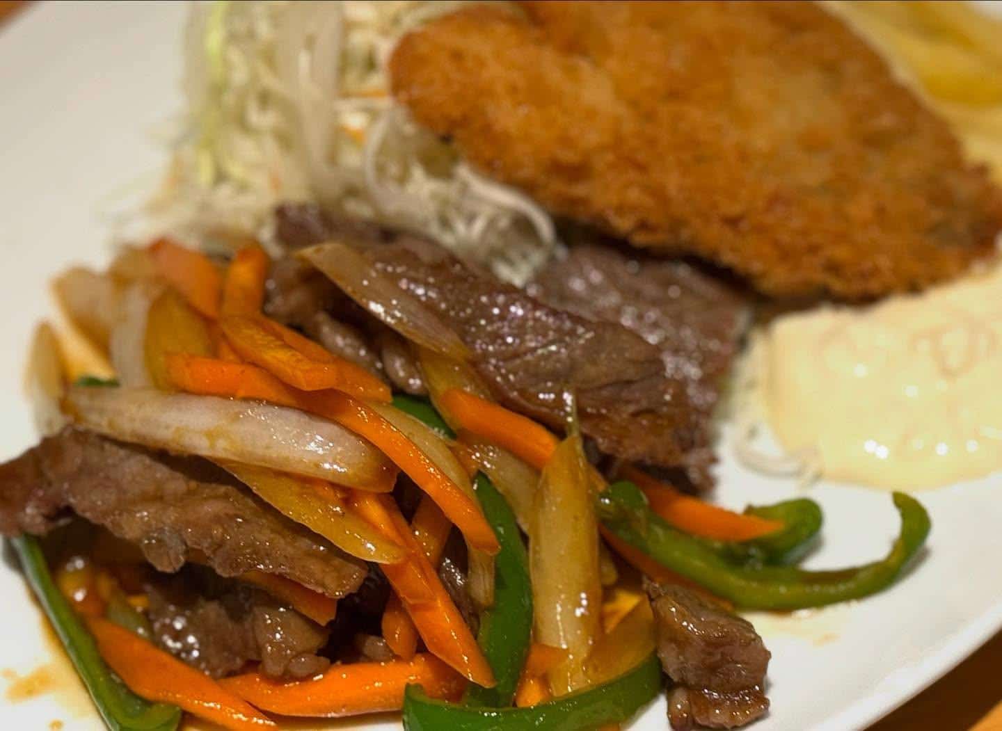 本日のおすすめランチです🍴 牛スタミナ焼肉&白身魚のフライ😊 数量限定販売となっております。 スープ、ドリンク飲み放題♪ライス大盛り、おかわり無料♪♪ 本日も沢山のご来店お待ちしております😊