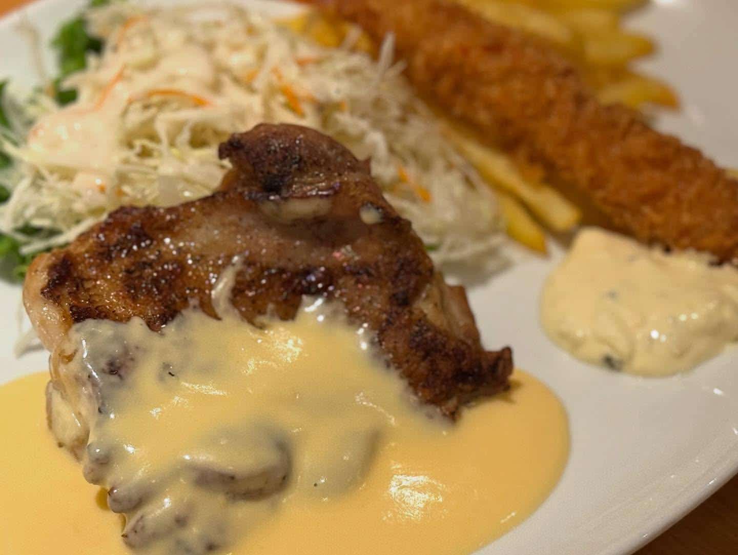 本日のおすすめランチです グリルチキン〜クリームチーズソース〜&海老フライ😊 数量限定販売となっております。 スープ、ドリンク飲み放題♪ライス大盛り、おかわり無料♪♪ 本日も沢山のご来店お待ちしております😊