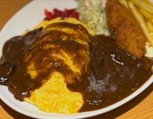 本日のおすすめランチです オムカレー&白身魚のフライ😊 数量限定販売となっております。 スープ、ドリンク飲み放題♪ライス大盛り、おかわり無料♪♪ 本日も沢山のご来店お待ちしております😊