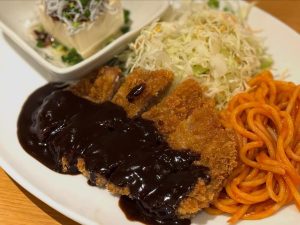 本日のおすすめランチです 豚ロースカツ〜デミグラスソース〜&冷奴😊 数量限定販売となっております。 スープ、ドリンク飲み放題♪ライス大盛り、おかわり無料♪♪ 本日も沢山のご来店お待ちしております😊