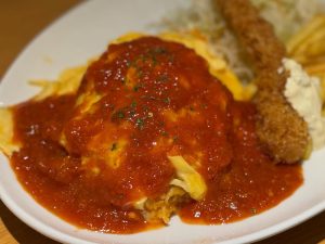 本日のおすすめランチです オムライス〜トマトソース〜&海老フライ😊 数量限定販売となっております。 スープ、ドリンク飲み放題♪ライス大盛り、おかわり無料♪♪ 本日も沢山のご来店お待ちしております😊