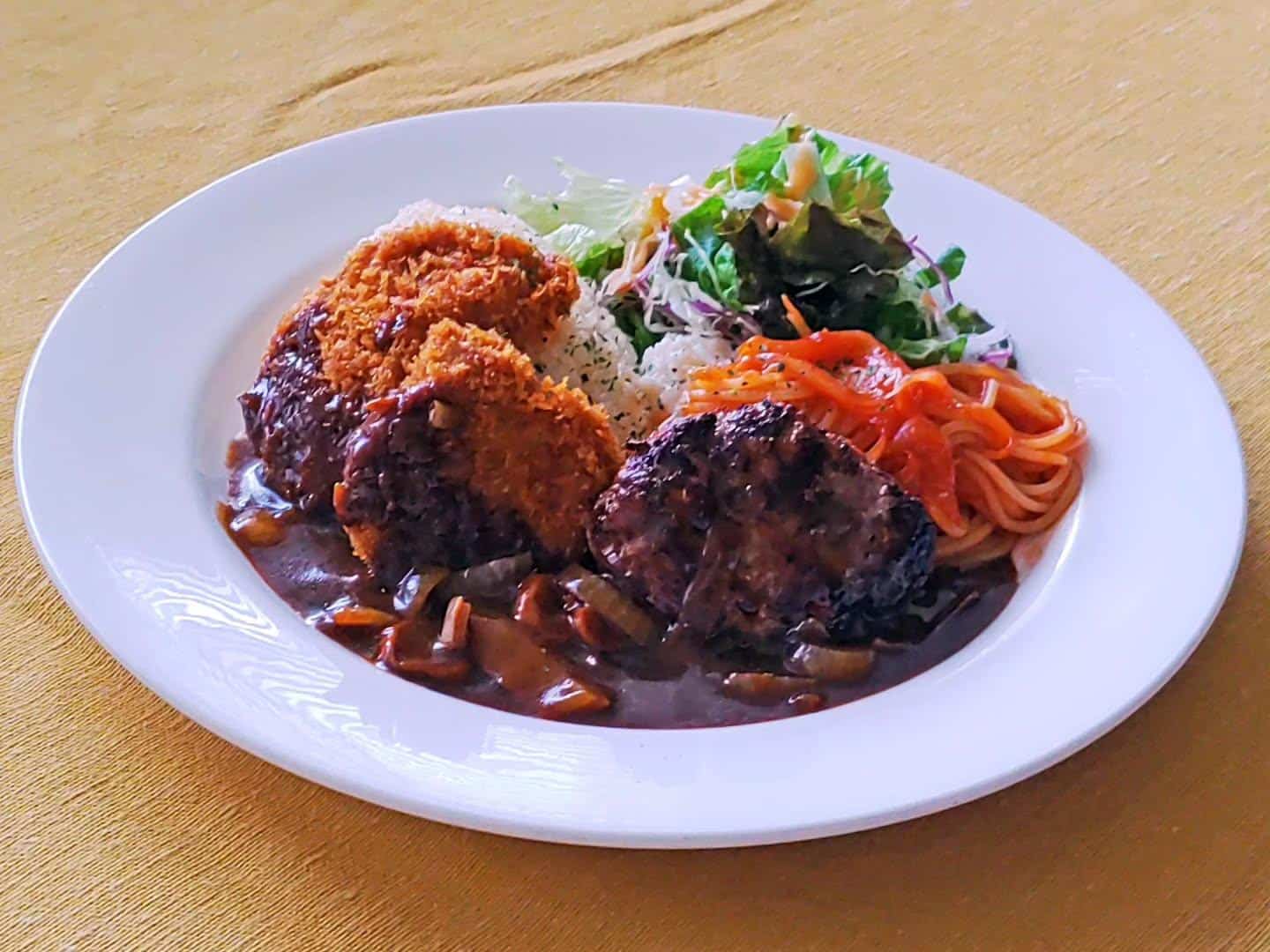 ヒレカツ・ハンバーグ・ナポリタン・バターライス・サラダ付き