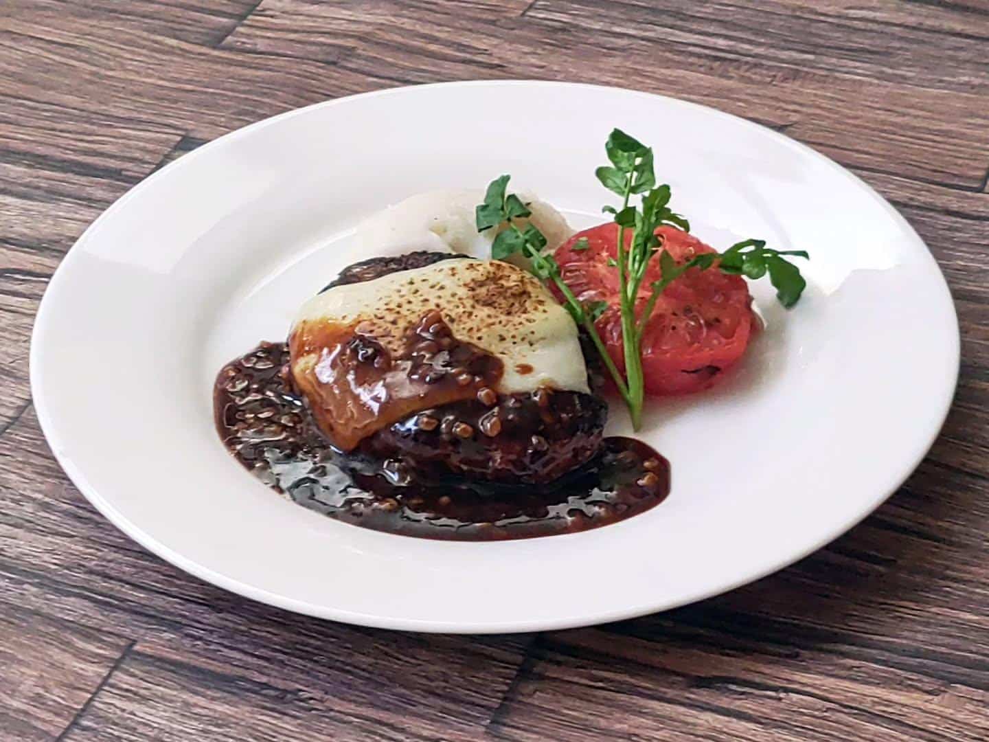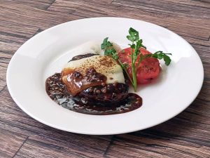 ◆もろみソースのチーズハンバーグ グリルトマト添え