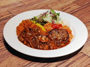 ◆ポークカツとハンバーグのトルコライス ~ハッシュソース~