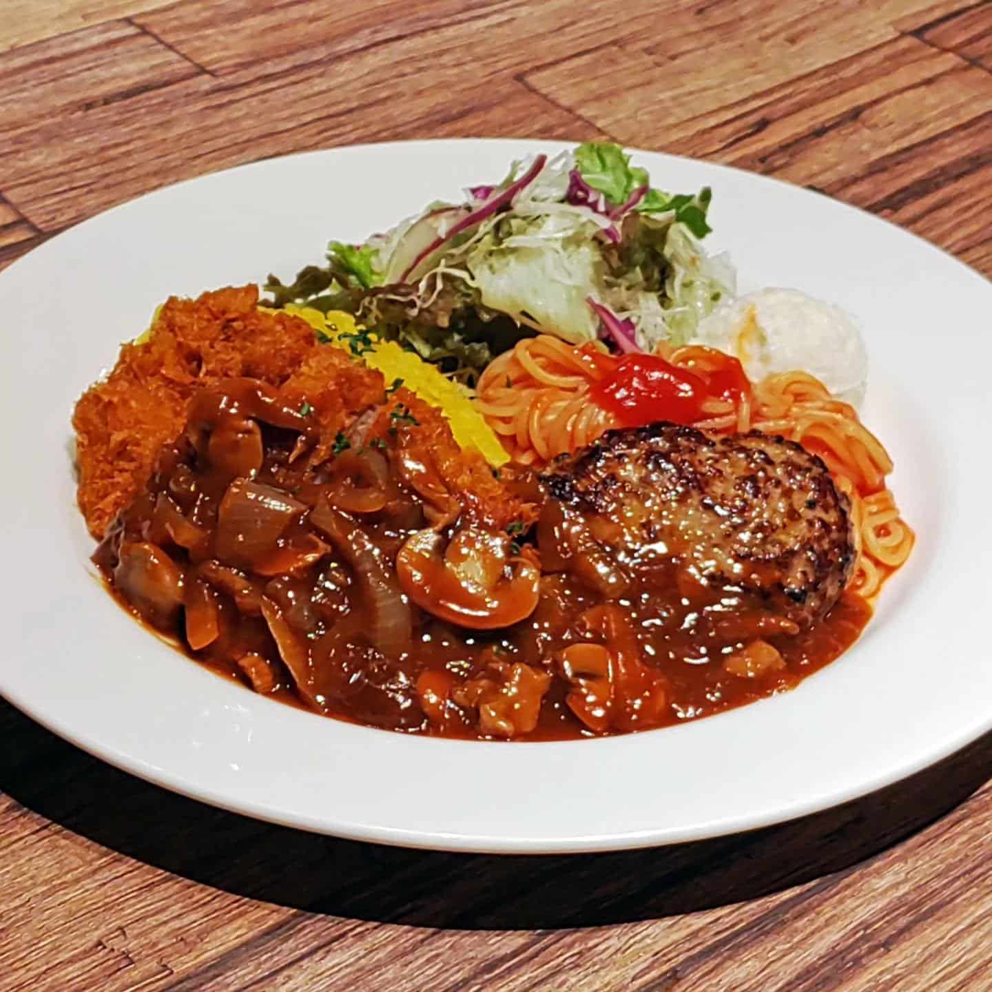 ◆ポークカツ&ハンバーグのトルコライス ~ハッシュソース~