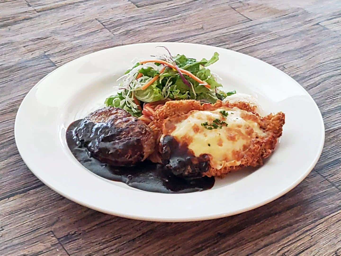 ◆ハンバーグ&チキンカツのタルタルチーズ焼き ~デミグラスソース~