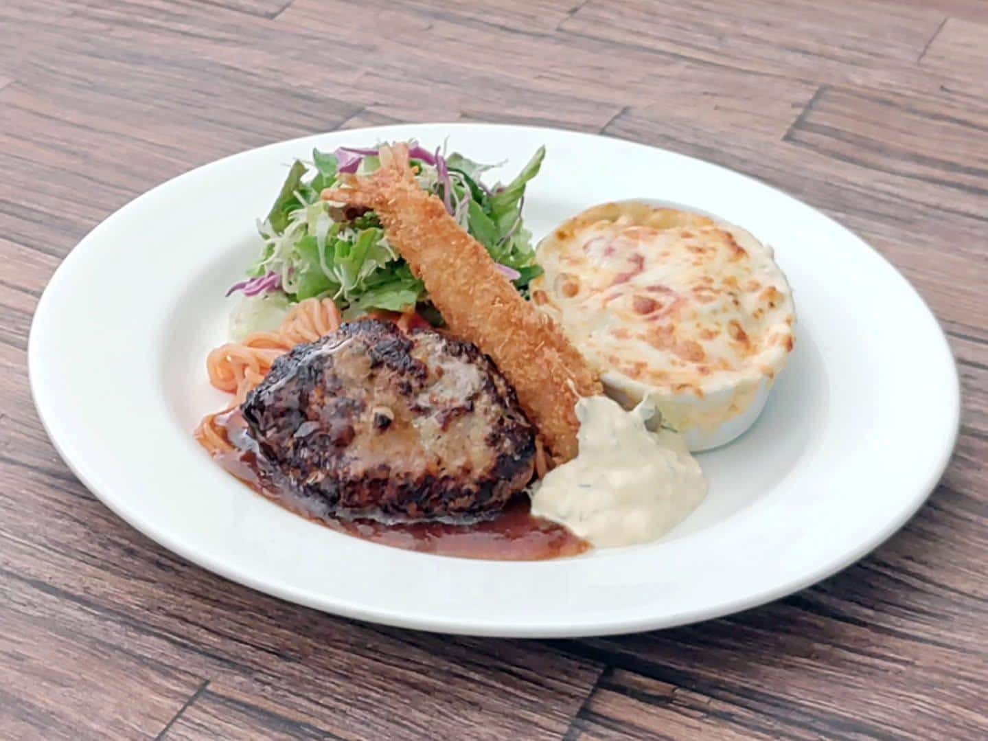 ◆洋食プレート テリヤキハンバーグ、シーフードマカロニグラタン、エビフライ