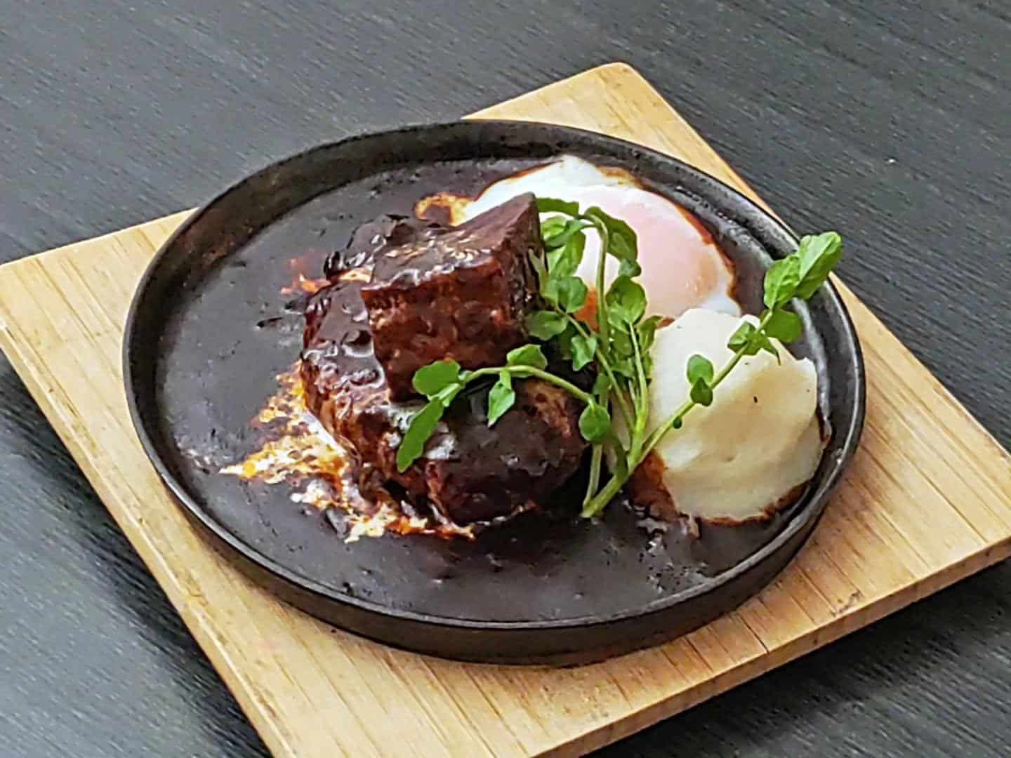 ◆ビーフシチューハンバーグ ~温泉玉子を添えて~